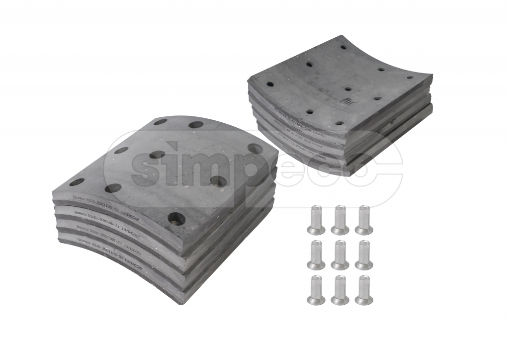 Описание и обзор:: Накладка тормозная КамАЗ-6520 Евро с 2013г. (сверлен.,расточен.) (к-т=8шт.) Premium 6520-3501105-51 "SIMPECO" (Китай) /арт.SP0410.1030/