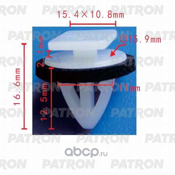 Технические характиристики: Клипса автомобильная (автокрепеж) "Patron" (Китай) /арт.P370050/